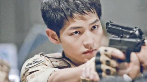 而『太陽的後裔』中,沒了老戲骨包圍的困境,『劉大尉』這角色終於讓這個被韓國戲稱 ”當兵最久的男人“(因為宋仲基退伍之後還是持續接演跟軍隊有關的戲劇而擺脫不了軍旅生涯),終於展現出當兵後的男人味及英氣。