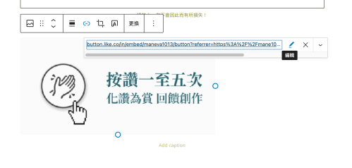 => 點選下圖 ”編輯“ 處,即可以確認貼入的超連結語法是否正確