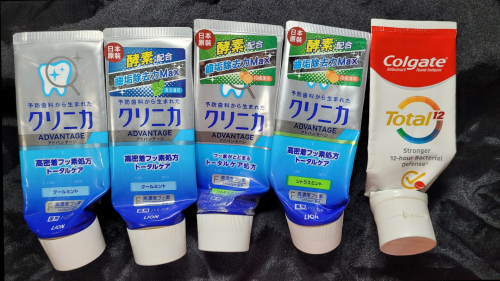 (右邊那條是寶雅拿到的贈品)現在換買高露潔敏感牙齒專用牙膏,覺得效果有差一些些, 所以手上兩條用完之後,還是會回購獅王。